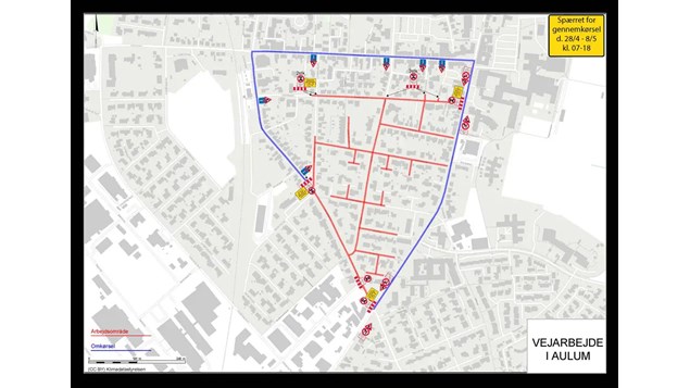 I forbindelse med vej- og transportarbejde vil arbejdet starte den 28. april 2025 og forventes afsluttet den 8. maj 2025. I denne periode vil der være omkørsel via Skolegade, Danmarksgade og Jernbanegade, og busrute 140 vil blive omlagt med ændrede stoppesteder. For detaljer om tidsplanerne kan man se mere på rejseplanen.dk.
